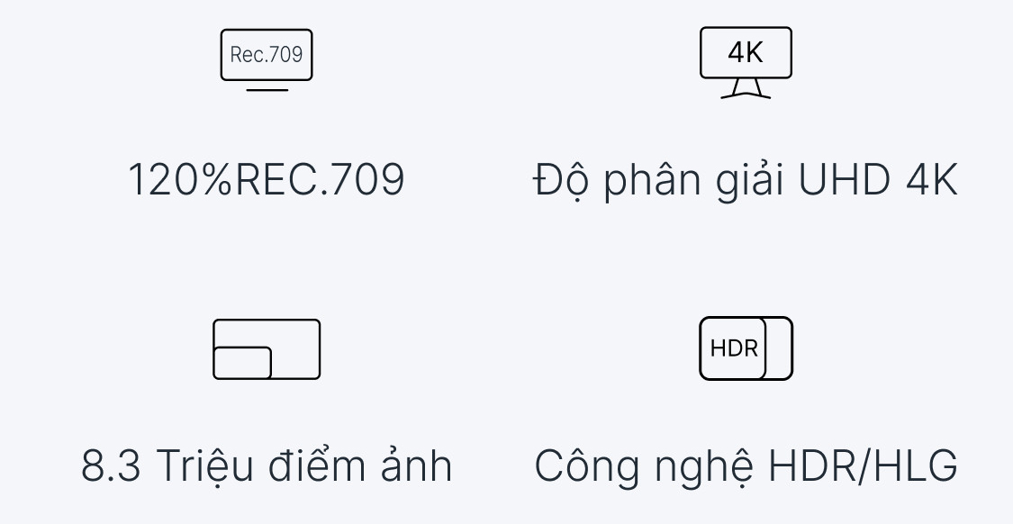 Thiết kế thanh thoát, sang trọng, kích thước lớn, hiển thị tràn viền 5mm, không vết ghép, mang lại trải nghiệm hình ảnh cao cấp.