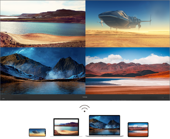 ViewBoard® Cast cho phép truyền nội dung từ thiết bị di động lên màn hình qua mạng không dây hoặc cáp. Nhiều người dùng có thể đồng thời chú thích nội dung (như tài liệu, các nội dung đa phương tiện, v.v.) trên thiết bị của họ trong thời gian thực, sau đó truyền phát và chia sẻ nội dung đó lên màn hình khổ lớn ViewSonic. Có khả năng chia sẻ màn hình với nhiều tuỳ chọn: One-to-one, One-to-many và khả năng hiển thị 4 trong 1.